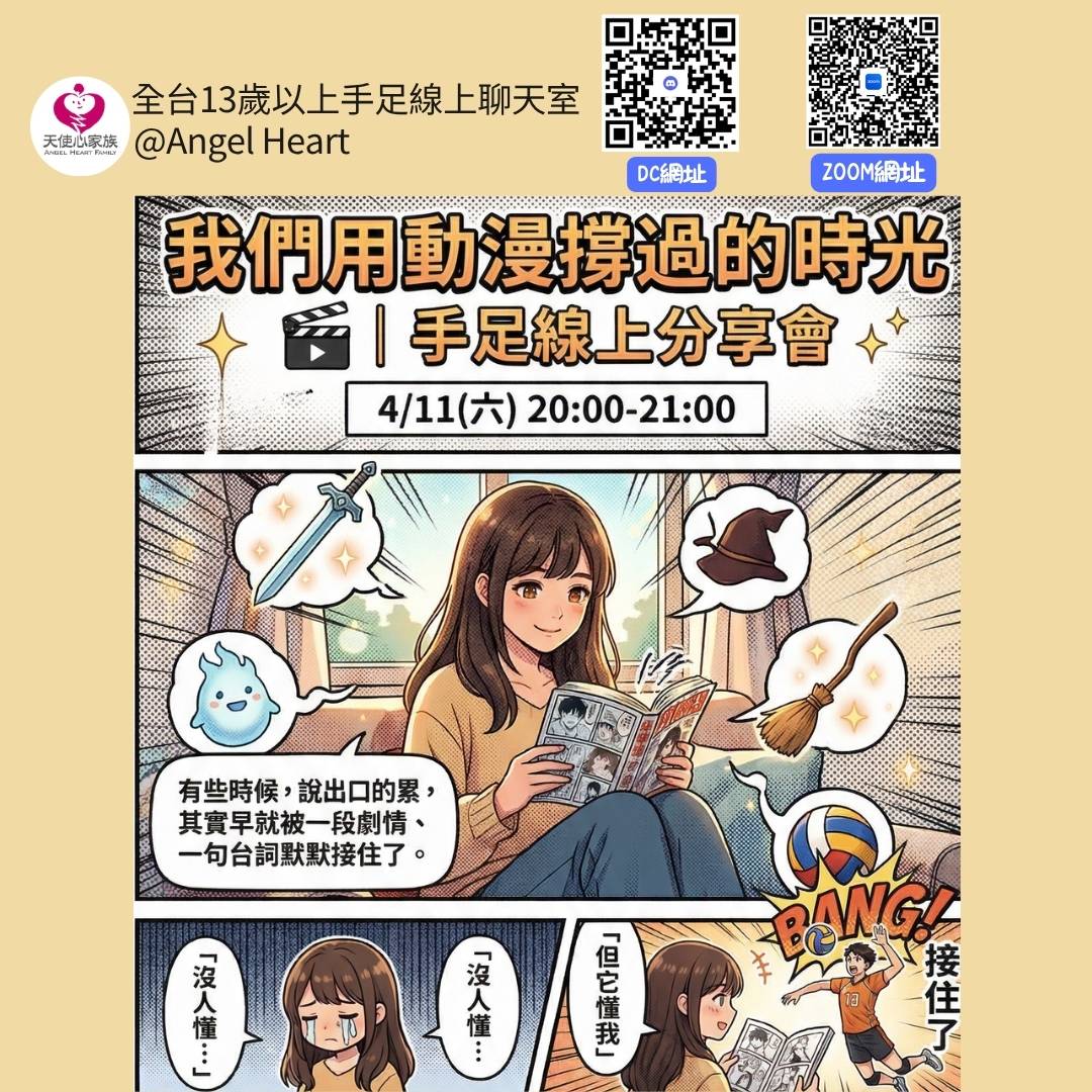 這是一場輕鬆的線上分享,聊聊你喜歡的動漫、角色或片段,也說說它如何陪你走過那些時刻 。